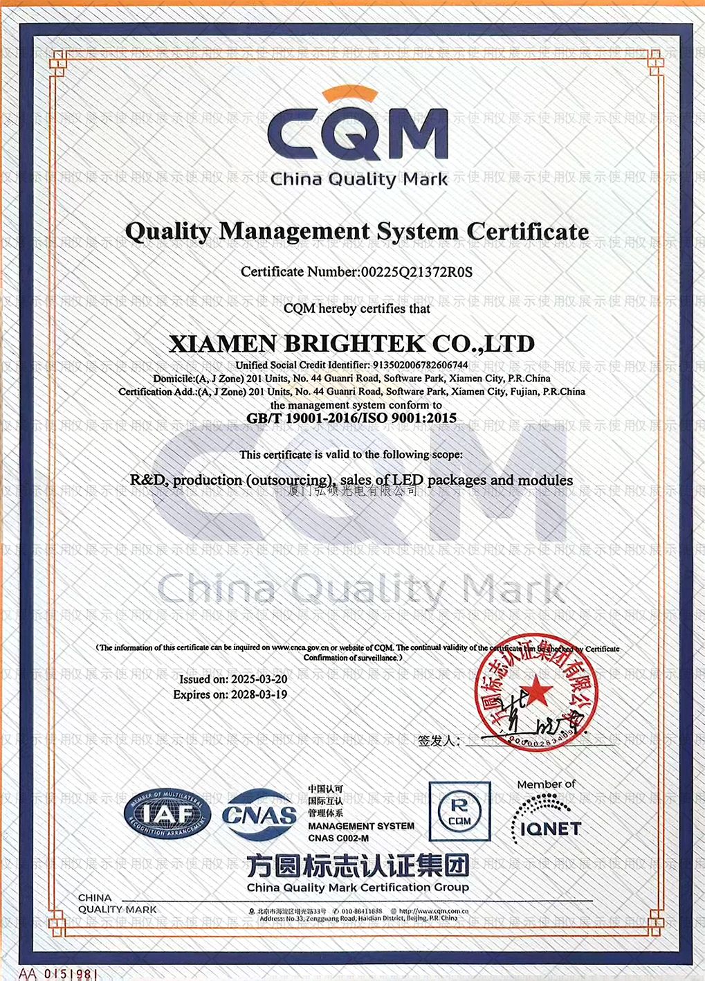 ISO9001证书